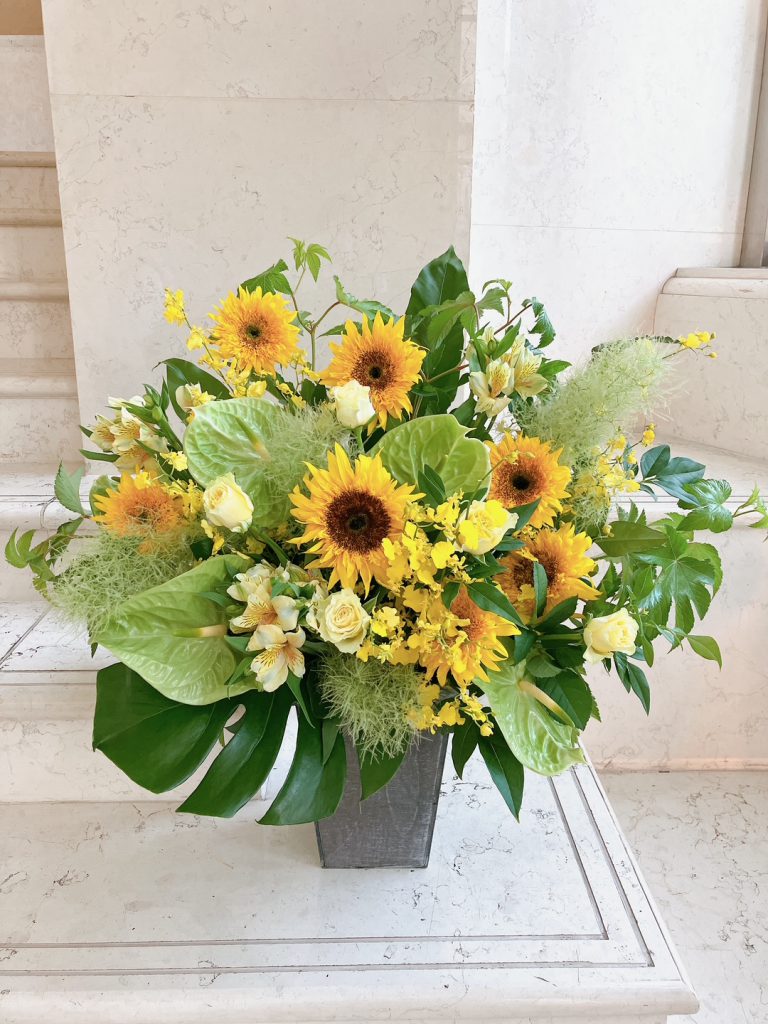 季節限定 ひまわりやスモークツリーなど季節の花をアレンジしました♪