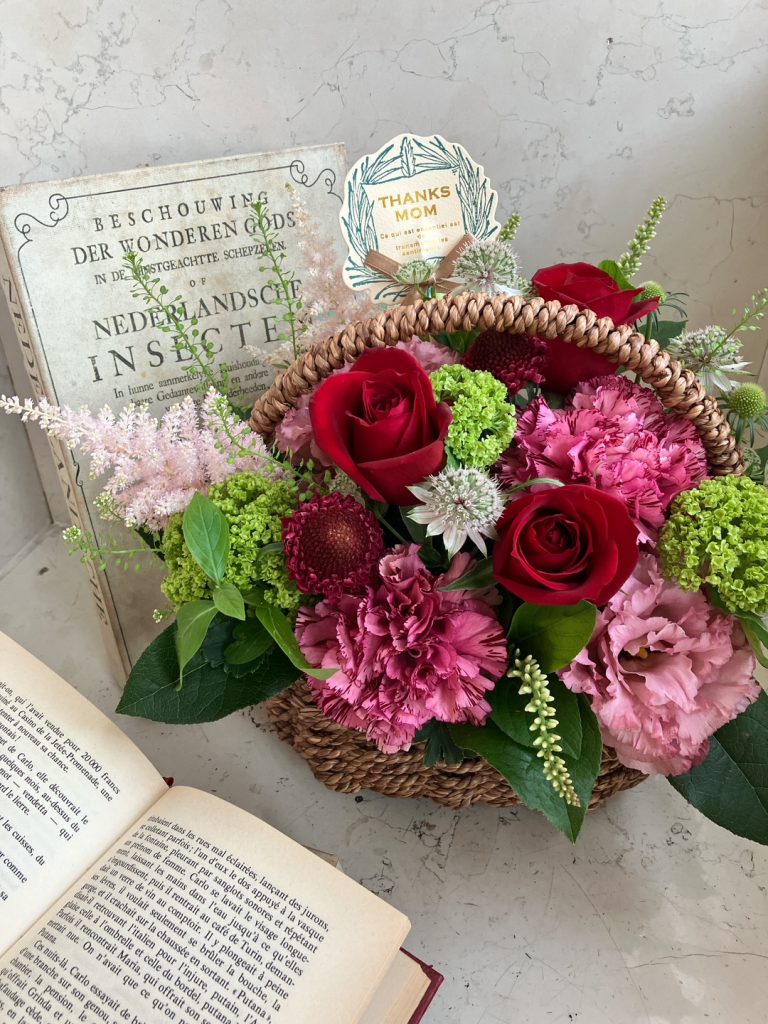 赤いバラとカーネーション”バイパーワイン”を組み合わせた